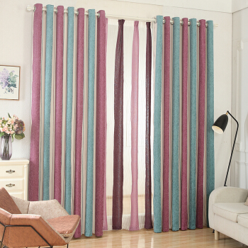 席韻の家紡の新型地中海のシェニールの縦縞のカーテンの布地の広いストライプの色は北欧の特注した完成品のカーテンのシェニールの幅の条(単)-青い紫の布の高さの2.7 mを編んで高く注文して広い1メートルの価格(布袋の4本の爪の鉤)を改正することができます。
